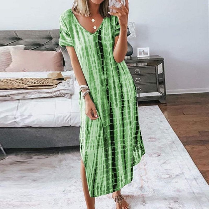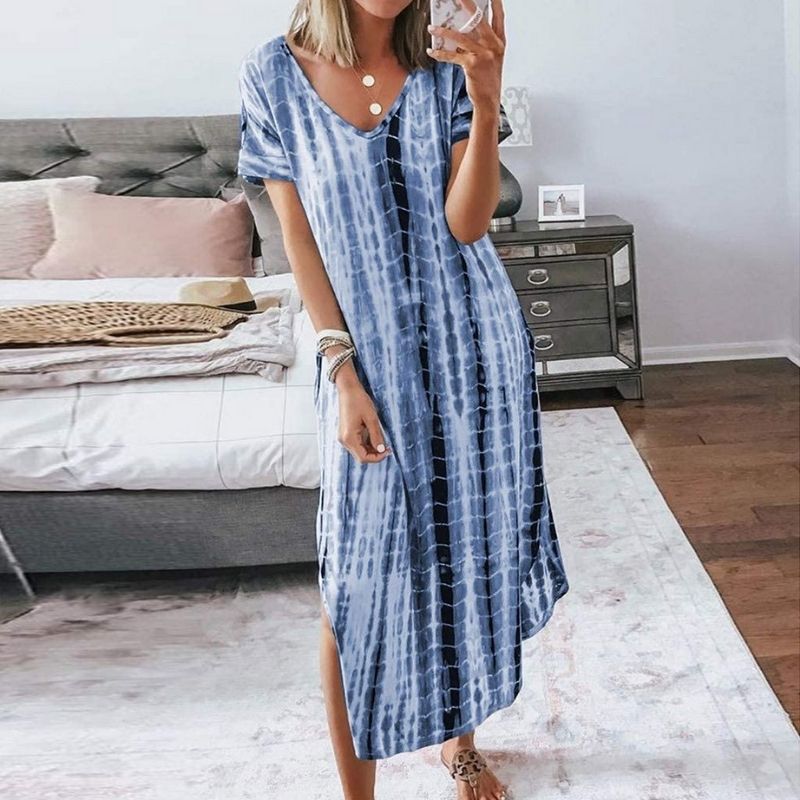 Women's Maxi Dress - V-Neck - Short Sleeve - Relaxed Fit - Casual Breathable Wear