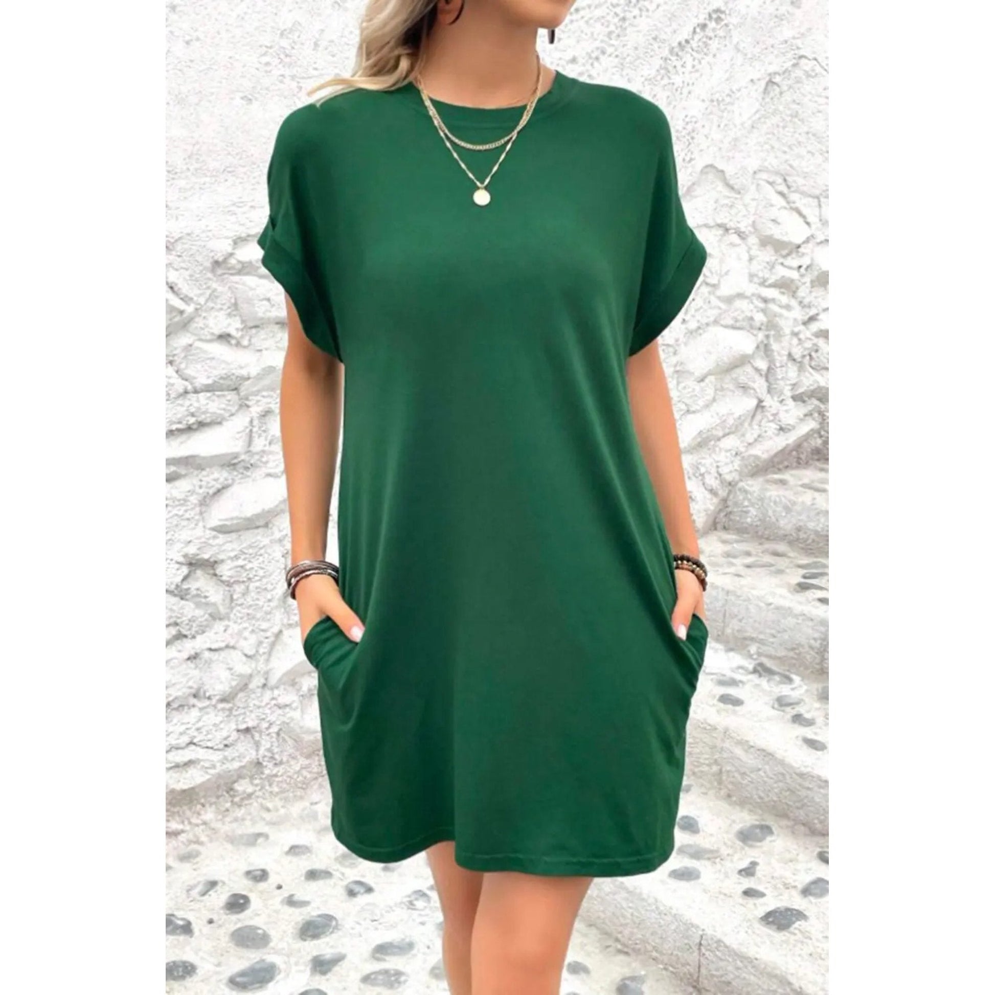 Effortlessly chic, this Women’s Short Dress - Belted Waist - Round Neck - Dolman Sleeves - Relaxed Fit is a versatile addition to your wardrobe. Featuring a flattering belted waist, comfortable dolman sleeves, and a relaxed silhouette, this dress offers both style and ease for any occasion.