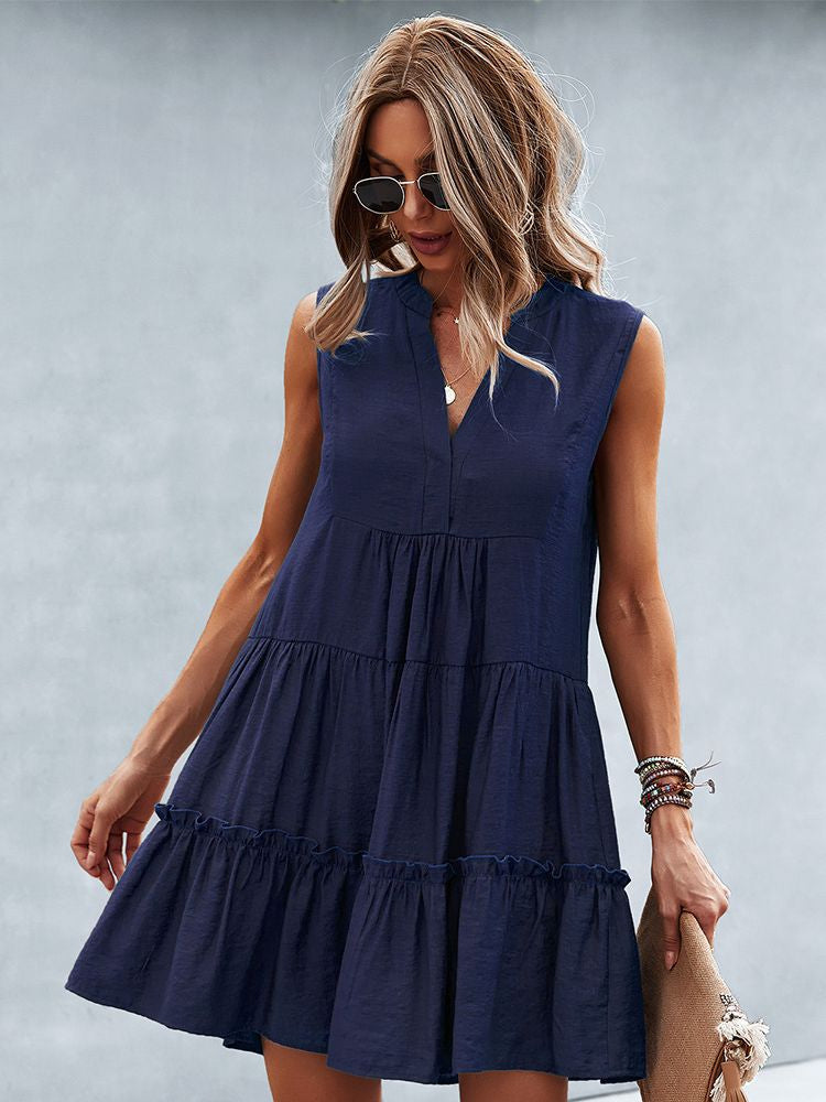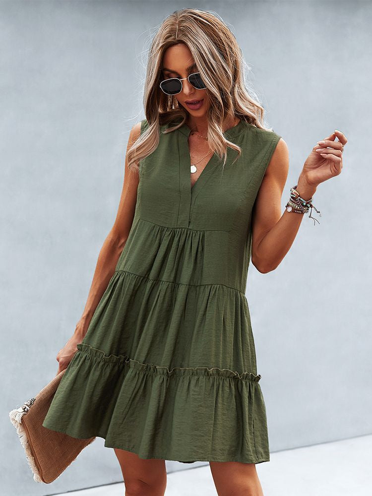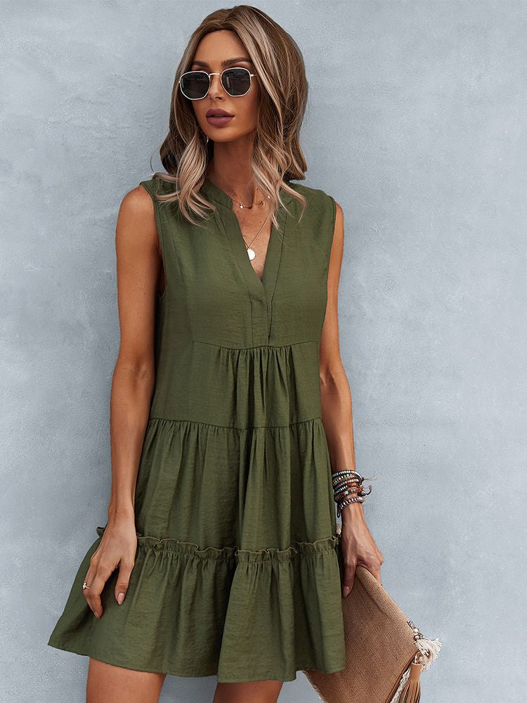 Women's Tiered Dress - Sleeveless V-Neck - Flowing Lightweight Casual Wear