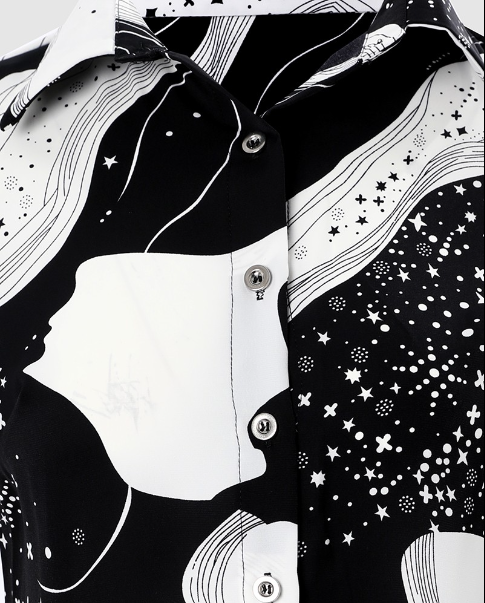 Women's Button-Up Blouse - Abstract Pattern - Long Sleeve - Classic Collar Elegant Fit
