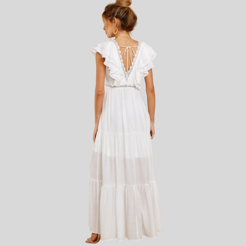 • Design: V-Neck, Ruffled Sleeves, Tiered Skirt