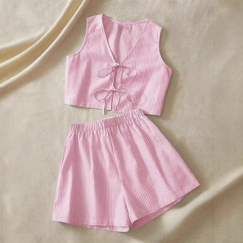 Women’s Crop Top – Slim Fit – Sleeveless V-Neck – Lace-Up Front – Lightweight Casual