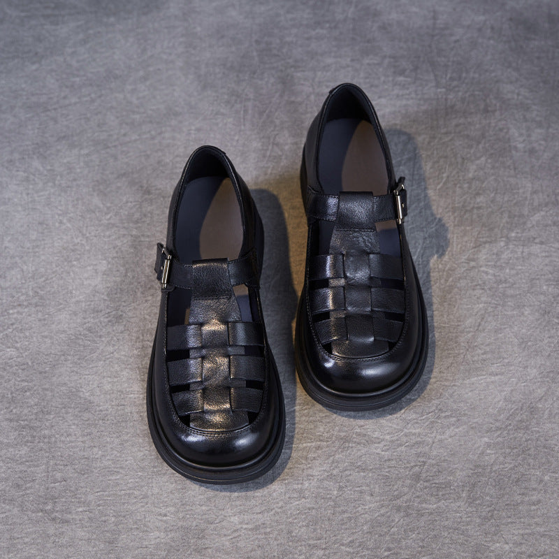 Women’s Roman Sandals – Flat Comfort Fit – Cut-Out Detail – Buckle Strap Closure