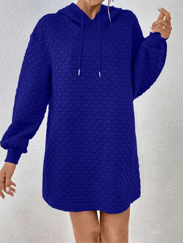 Embrace effortless style with our Women's Hooded Dress. Crafted from a textured knit, this relaxed-fit dress offers a flattering straight silhouette, ensuring both comfort and elegance. The adjustable drawstring hood and mini length provide versatile styling for a polished yet casual look.