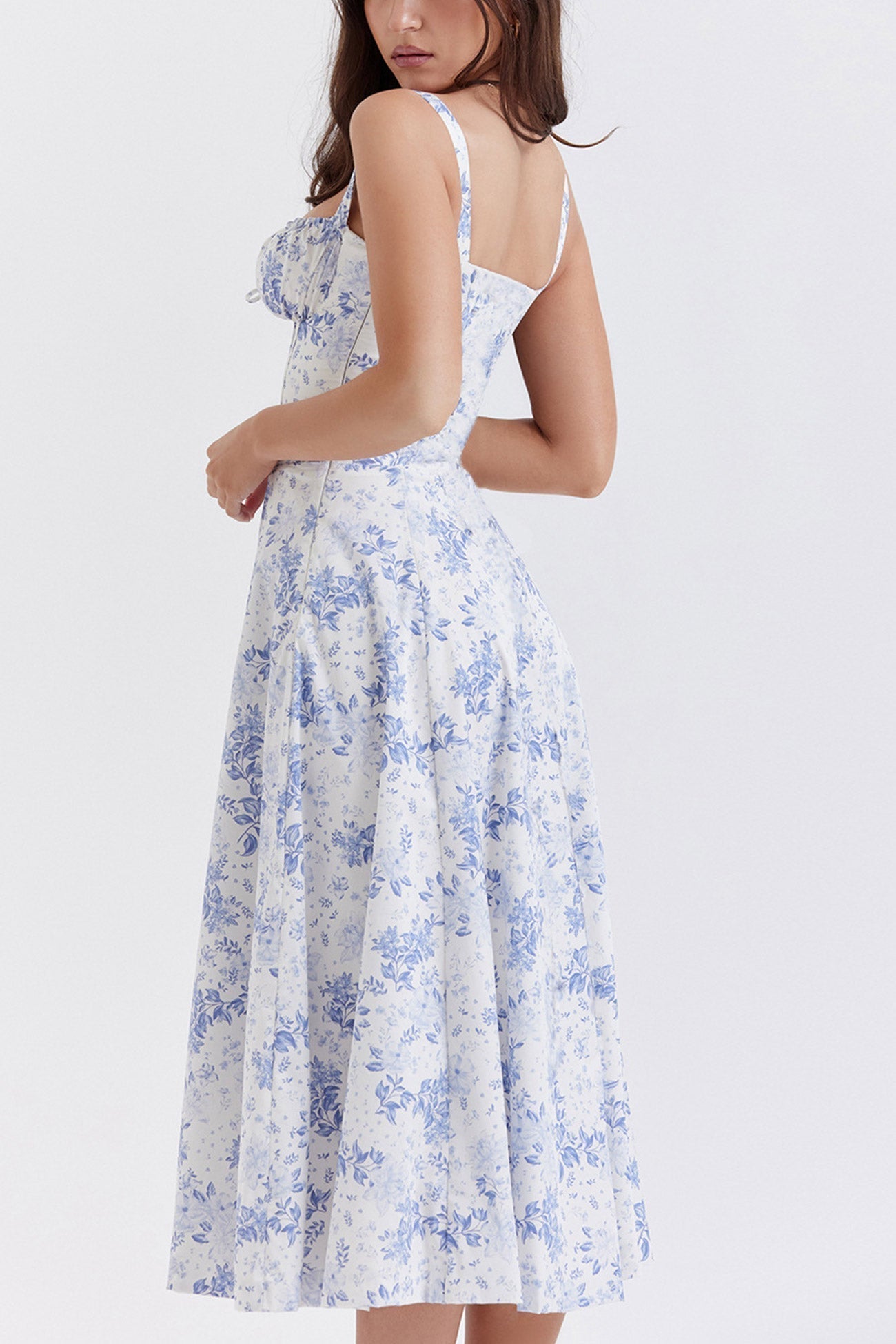 Women's Midi Dress - Corset Bodice - Sweetheart Neckline - High Slit Elegant Fit